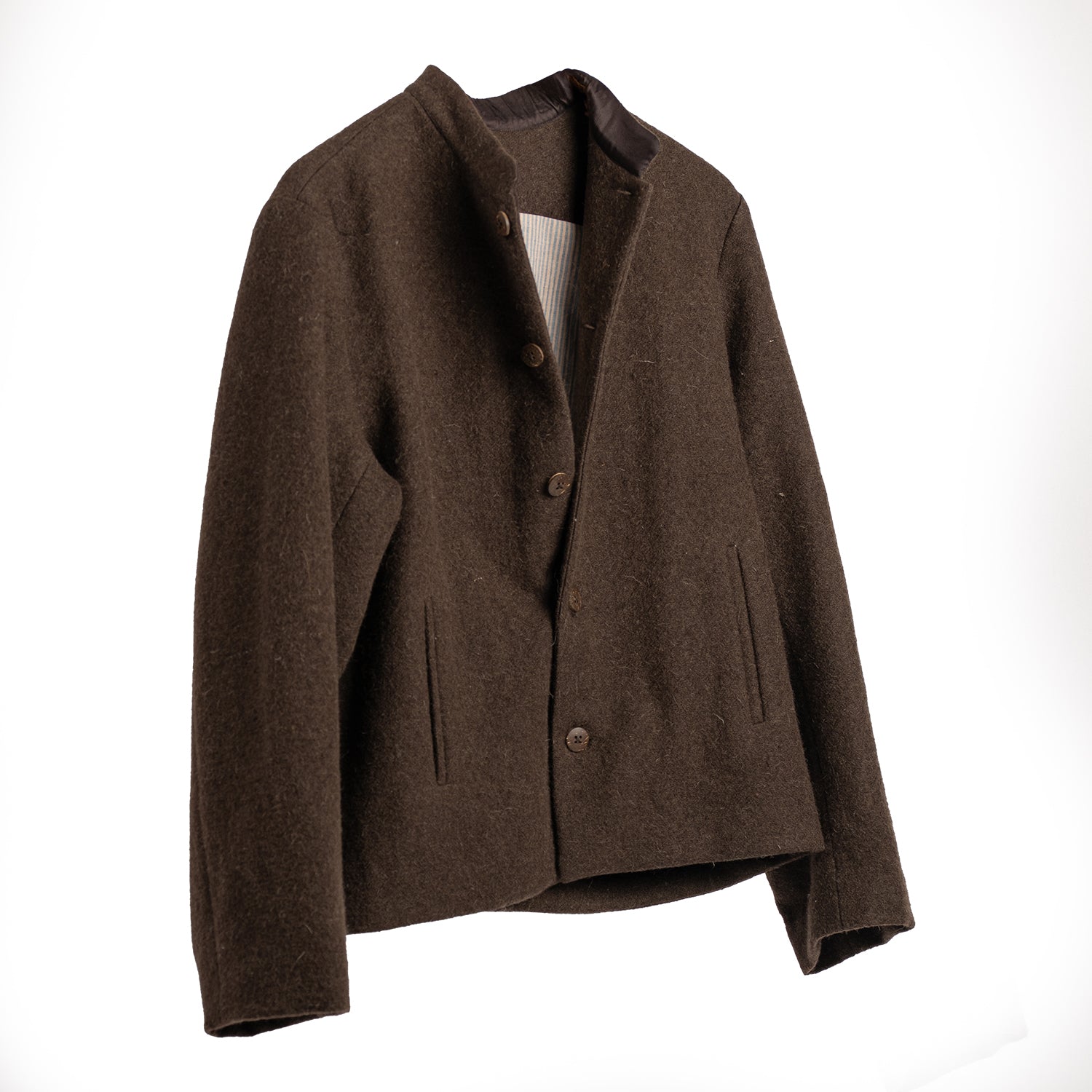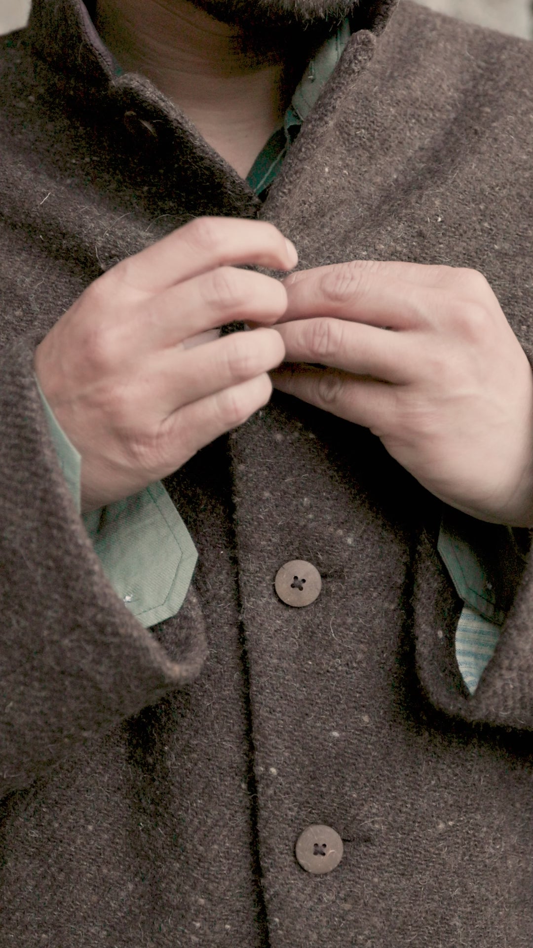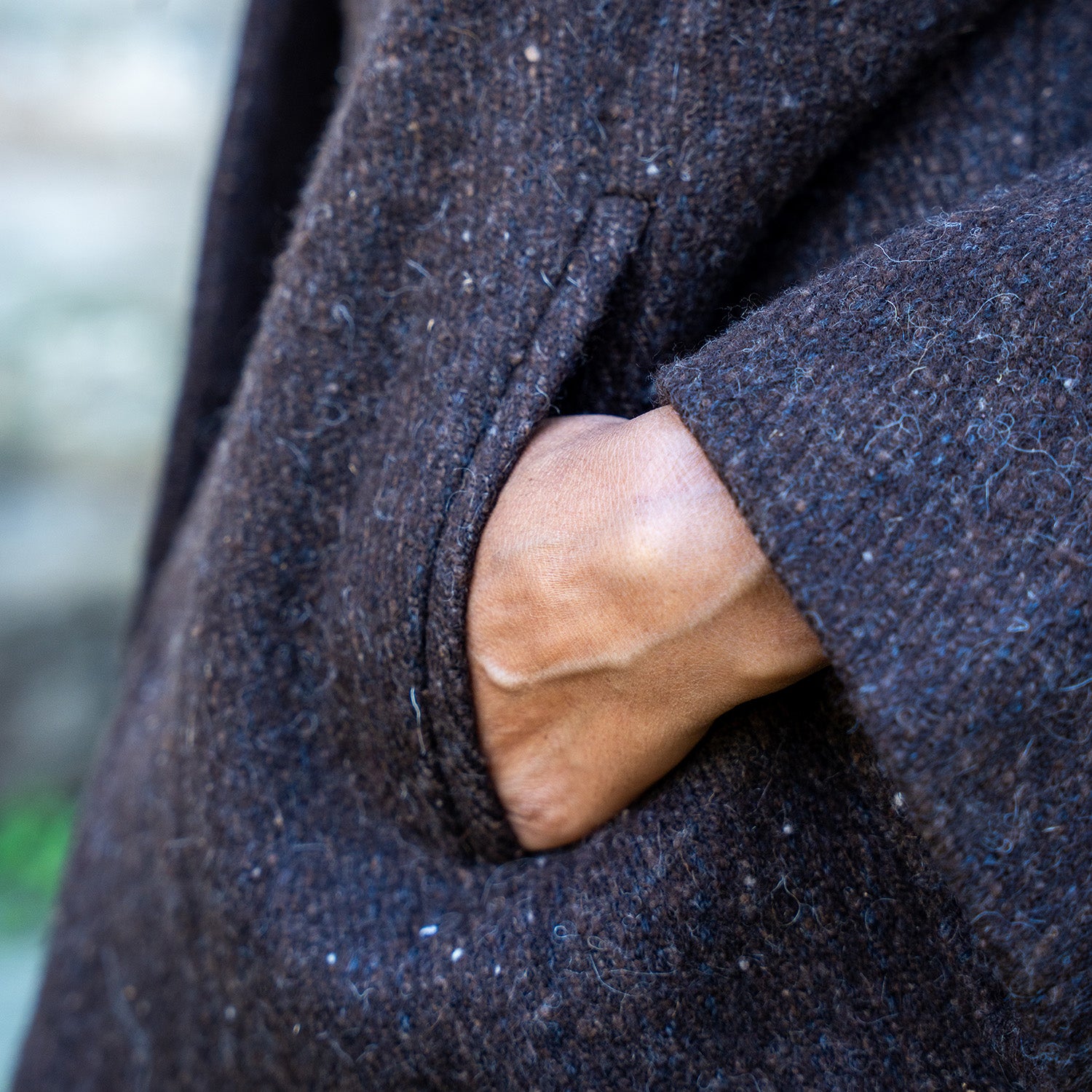 This contemporary interpretation of the traditional shepherd’s jacket features a relaxed silhouette designed for modern comfort. Crafted from fulled black wool, it preserves the timeless charm of the original while adding a refined, versatile edge. Ideal for layering, it transitions effortlessly from formal settings to casual outings. A true wardrobe classic, this is the jacket you’ll reach for season after season and pack for every journey.