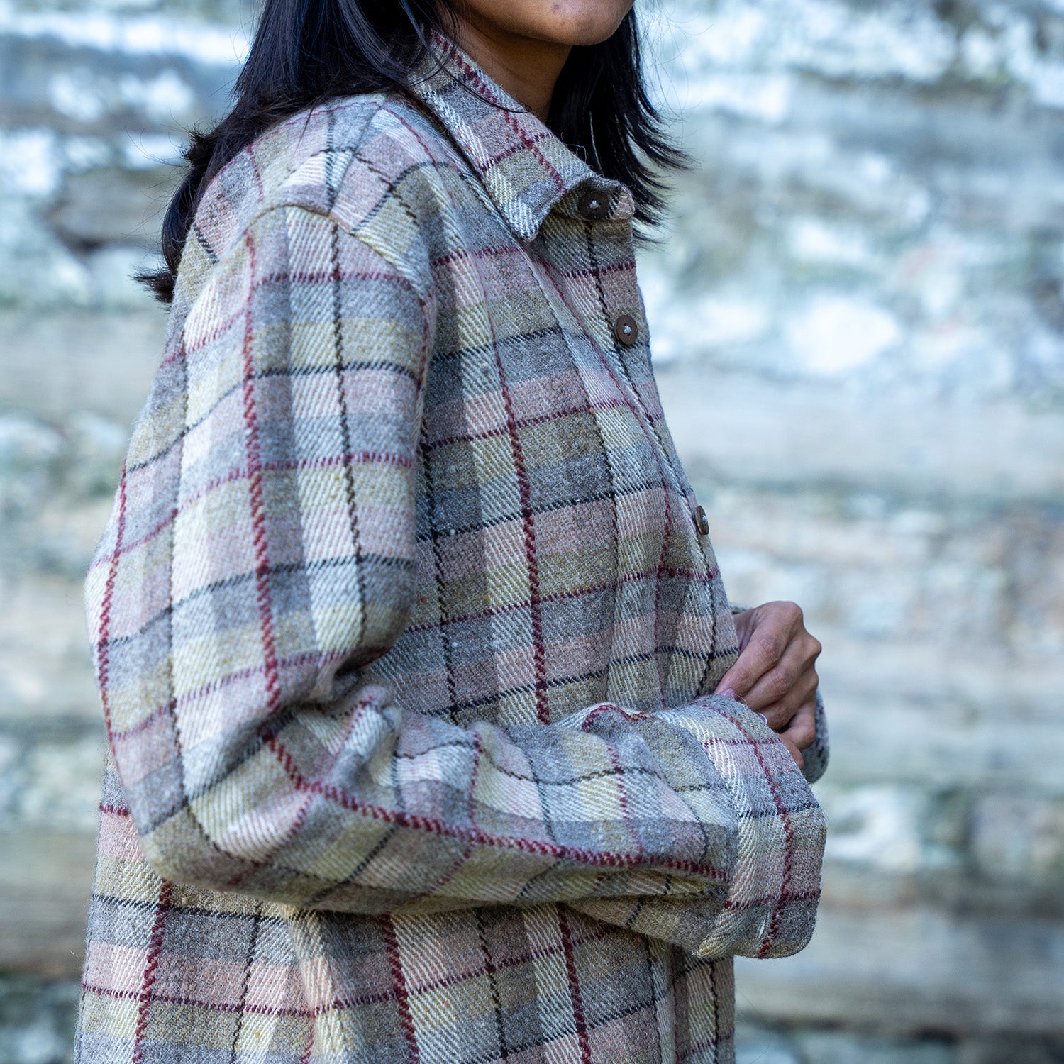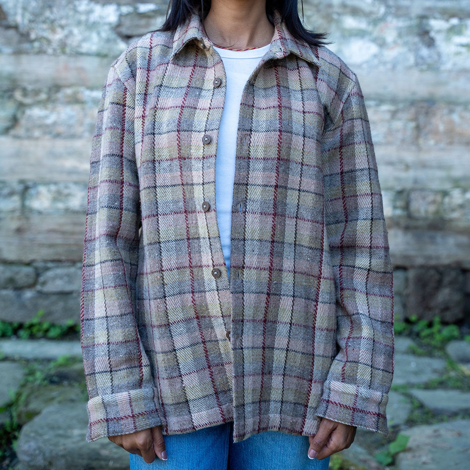 The Sirius Plaid Shirt is a timeless unisex staple, handwoven from indigenous Himalayan wool and naturally dyed with marigold, walnut, and sapanwood. Its lightly fulled texture creates a soft, comfortable feel, while the earthy plaid tones evoke a sense of warmth and authenticity. Designed for versatility, this shirt blends traditional craftsmanship with a contemporary silhouette, offering effortless style and lasting comfort.